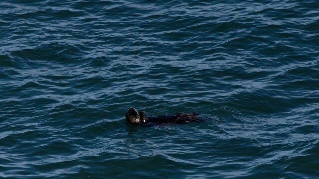 ラッコは体が小さく、遠くの海に浮かんでいることが多いため、最初はどこにいるのか分かりにくいこともあります。