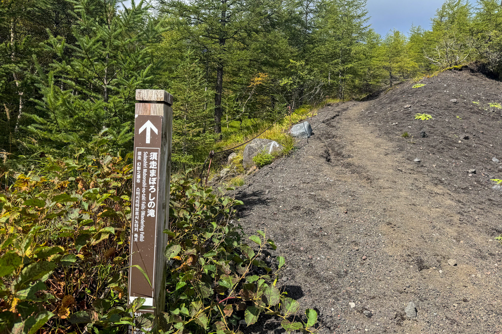 駐車場から菊谷・東富士山荘方面と逆方向のハイキングコースに向かいます