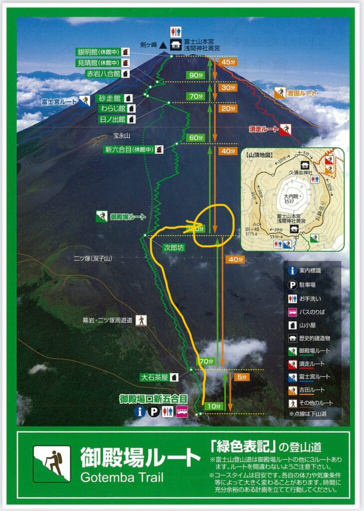 ※次郎坊は御殿場登山コースの上りと下りの交差場所です。ここで間違って下りの方を登ってしまう人が多いので気をつけましょう。