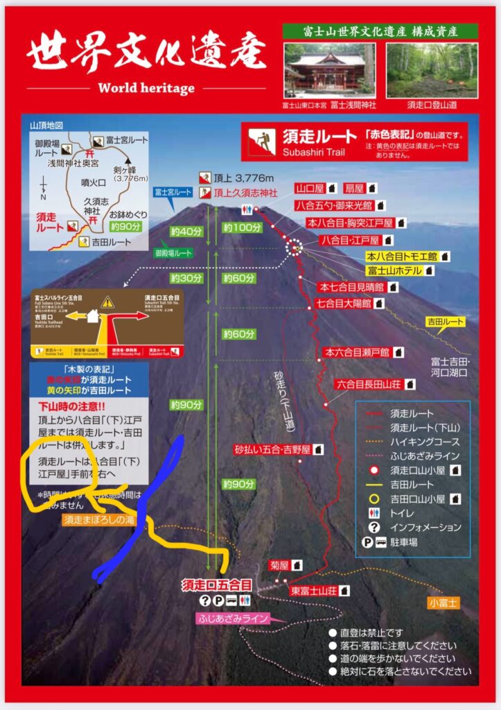 ・御殿場口新五合目以降施設がほぼない。