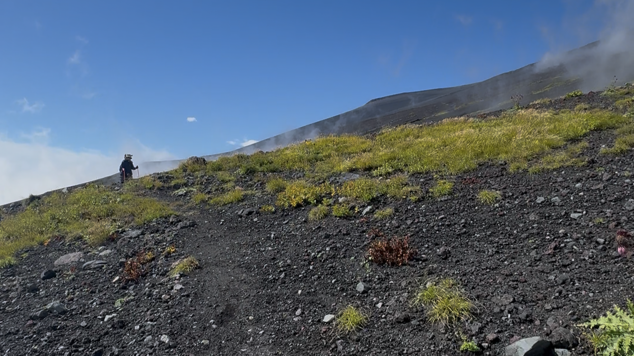 なぜなら、細かい火山灰は靴をすり抜け、靴下もすり抜け足にべったりついてしまうんです。
