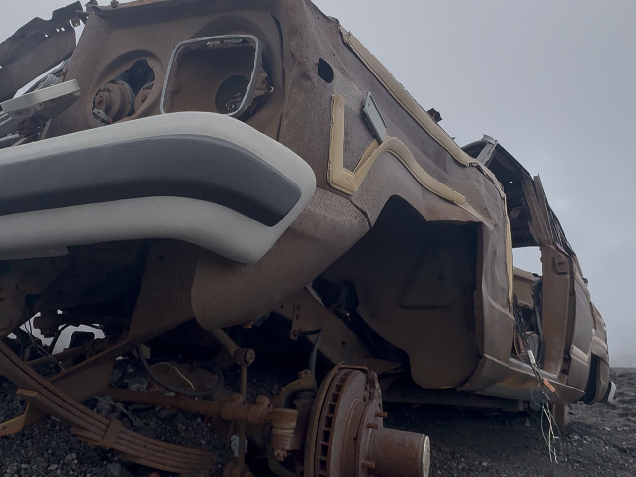 現在では街中でほとんど見かけることがなく、それが富士山の山中で廃車として残っているという点が、さらに異様さを際立たせています。