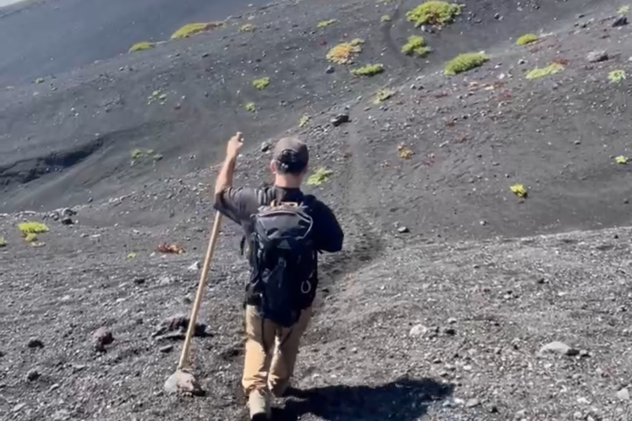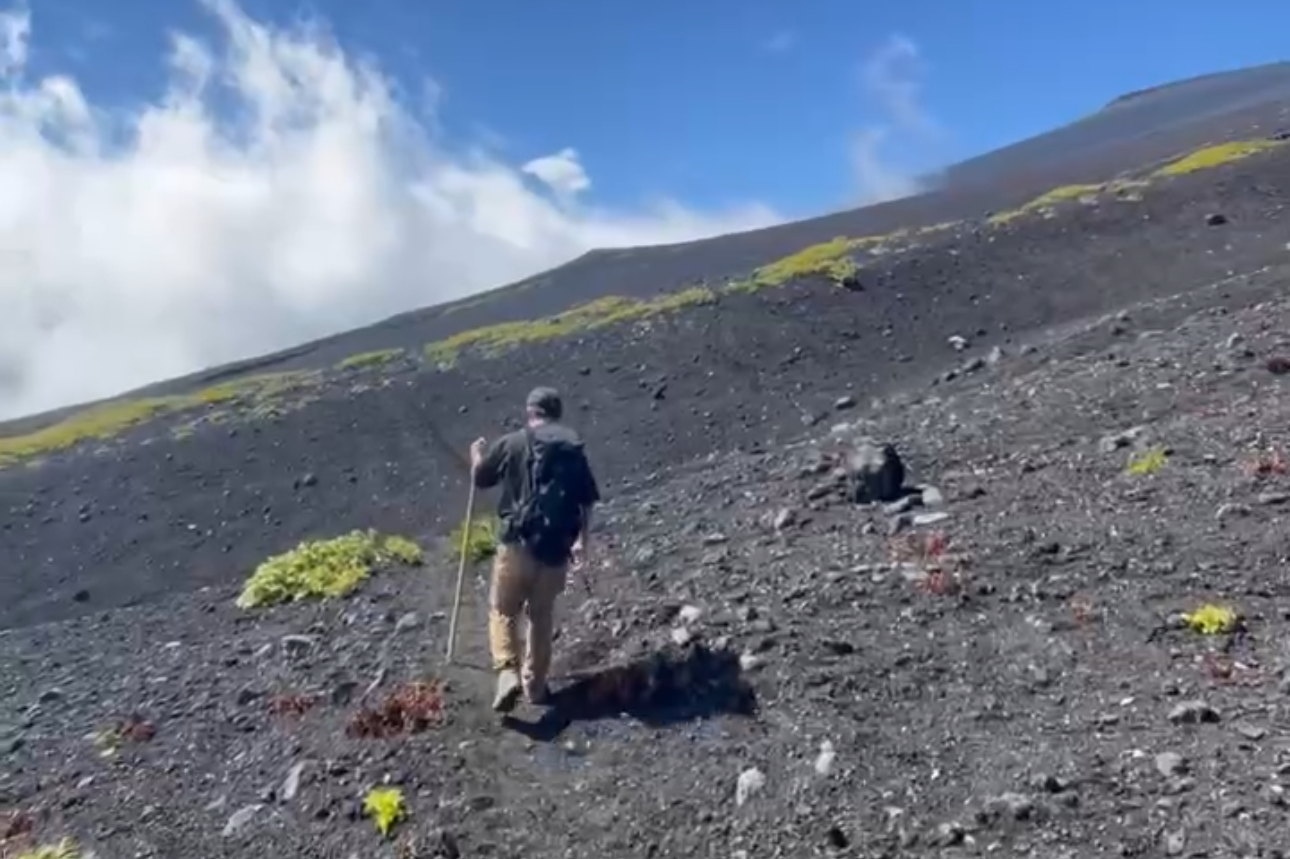 ワゴニアへ向かう道は、砂利や細かい火山灰なので足が埋まります。